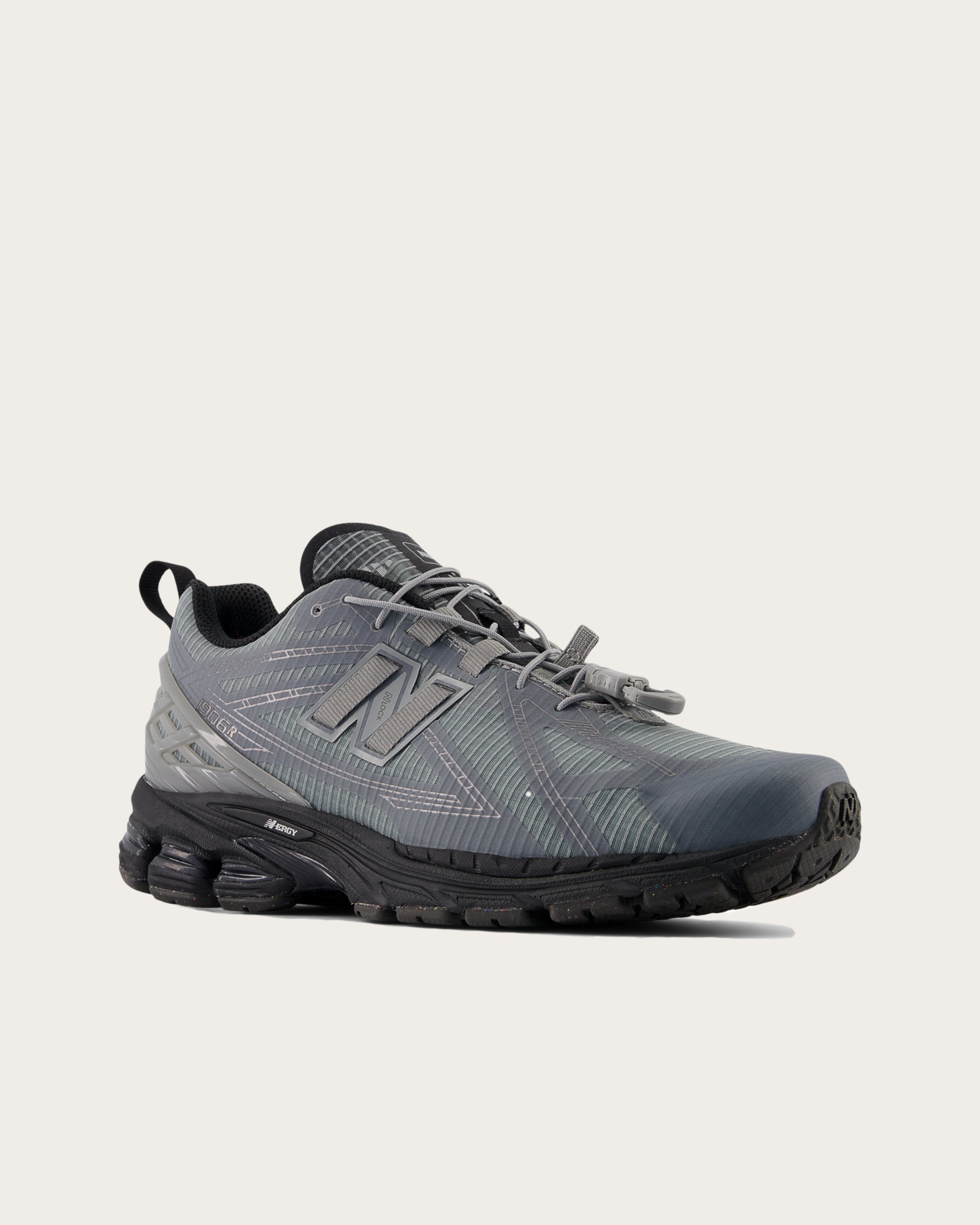 The 1906R, like its cousins the 2002R and the 860v2, is led by a sole unit featuring a combination of flexible ACTEVA LITE cushioning, shock absorbing N-ergy, and segmented ABZORB SBS pods at the heel. This hi-tech approach is also reflected in the 1906R’s upper design, which features open-holed mesh and a series of curvilinear synthetic overlays. This distinctive take on the era’s design conventions offers a refined execution of high-performance heritage.